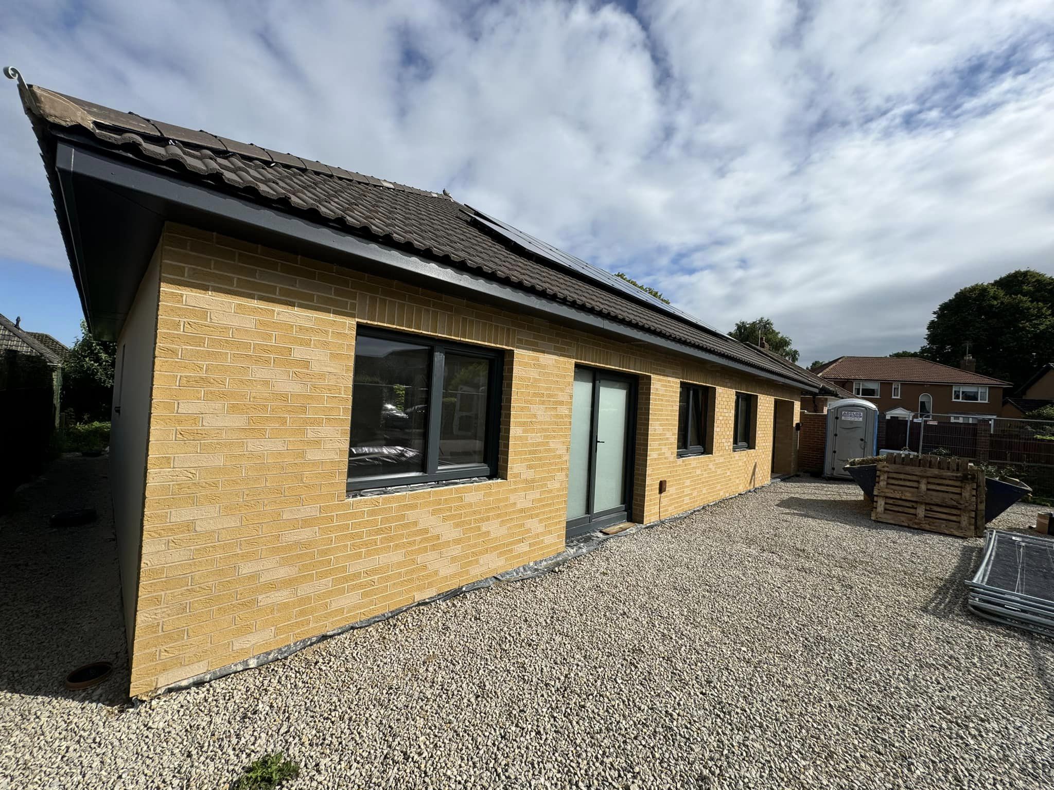 Sustainable home fitted with RAL 7016 Anthracite, Aluminium seamless guttering.
